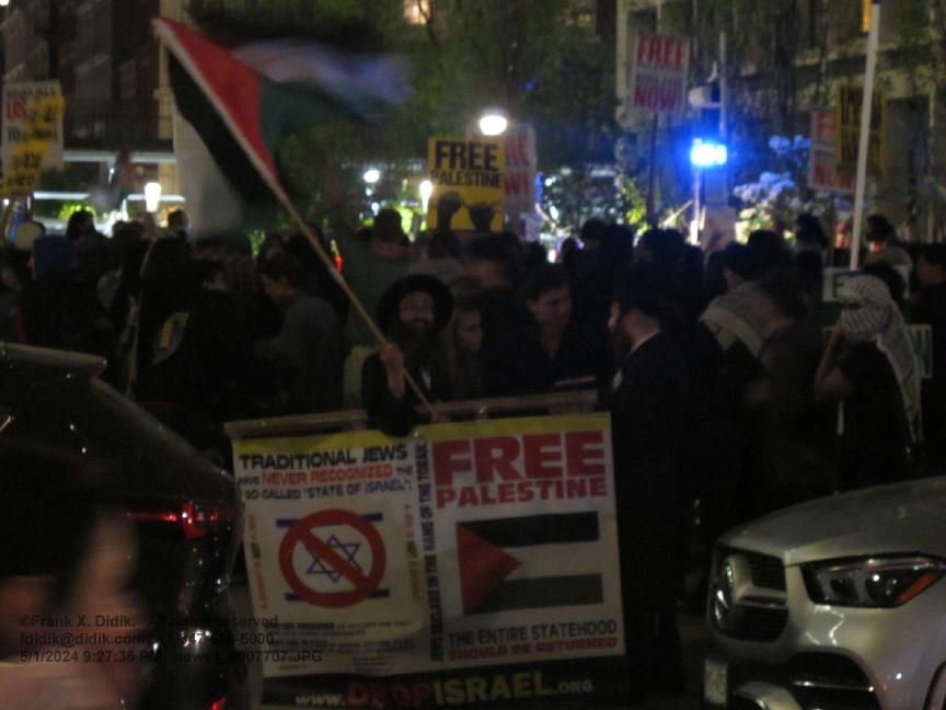 May 1, 2024 Major pro-Palestinian protest in Washington Square park consisting of thousands of protestors. The NYPD was out in force and carefully prevented the large pro-Palestinian demonstrators from the pro-Israeli demonstrators. Curiously, there were Orthodox Jews who were were demonstrating with the pro-Palestinians.