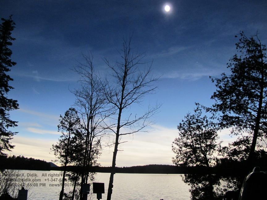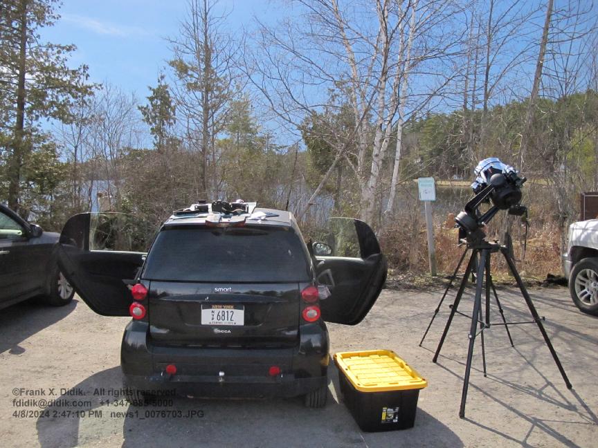 April 8, 2024 Eclipse in Upstate New York: From Mexico and all the way across the United States, there was a total eclipse. The time of totality was between 3 minutes and 3.5 minutes, depending upon the location. The width of totality was about 109 miles/170km. In the case of News1.net and Frank Didik, our telescopes were set up just north of Lake Placid New York, about 300 miles/500km north of New York City. A total eclipse is vastly different than a 99% eclipse. First, within just 4 seconds, the temperature dropped by 7 degrees Fahrenheit. During totality, animals and insects were confused. We were set up by a lake and immediately, the ducks, geese and loons could be heard screaming. The totality was different than just being dark. The colors, for some unexplained reason, seemed to shift. Further, our digital cameras did not seem to function well and we had to rely on film cameras. It is regrettable that we did not bring radio testing equipment. There are articles written in the 1950's by Ham (short wave radio) operators who wrote that the eclipse effected short wave communication.